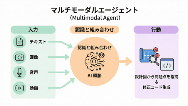 - マルチモーダルエージェント: 今後、AIエージェントはテキストだけでなく、画像、音声、動画といった多様な情報(マルチモーダル)を認識し、それらを組み合わせて行動する能力を獲得します。例えば、設計図を見て問題点を指摘し、修正コードを生成するといったことが可能になります。