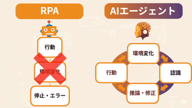 RPAも業務自動化を実現しますが、AIエージェントとは根本的に異なる特性を持っています。