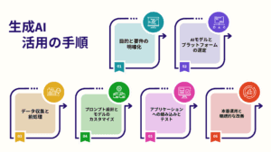 これらのメリット・デメリットを踏まえ、自社の業務に適した形で生成AIを導入することが成功の鍵となります。特に、導入初期は小規模なパイロットプロジェクトから始め、効果を検証しながら段階的に拡大していくアプローチが推奨されます。