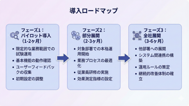 - 段階的導入アプローチ:リスクを最小化しながら確実に効果を実現
