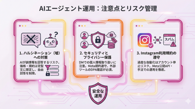 DMを通じて個人情報を扱う場合、Meta社の規約遵守はもちろん、外部ツールを利用する際はデータの取り扱いに関する契約(DPA)の確認が必須です。