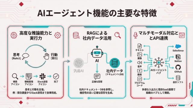 開発会社が提供するAIエージェントには、ビジネス実務に耐えうる高度な技術が凝縮されています。