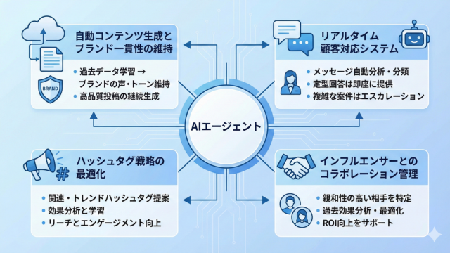 AIエージェントは、企業のTwitterマーケティングを根本的に変革する革新的な技術です。コンテンツ制作の自動化から顧客対応の効率化、データ分析の高度化まで、従来の手動運用では実現困難だった包括的なSNSマーケティングを可能にします。