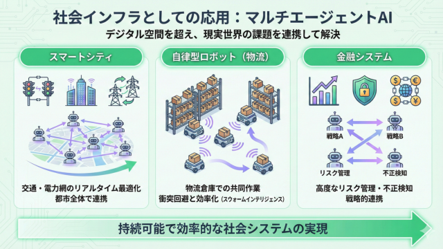 - スマートシティ: 交通信号の最適化や電力網の需給調整において、各地点のエージェントがリアルタイムに連携。
